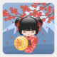 Red Sakura Kokeshi Doll - Cute Geisha Girl Square Sticker