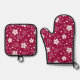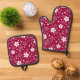 Red Sakura Pattern Oven Mitt & Pot Holder Set
