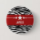 Trendy and modern Sassy Star Zebra Button featuring a chic black and white zebra print background and a bold red border adorned with a fun star motif. This girly design may be customised with the personalised text of your choosing. Click "Customise It" to find more personalisation options.