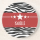Trendy and modern Sassy Star Zebra Sandstone Coaster featuring a chic black and white zebra print background and a bold red border adorned with a fun star motif. This girly design may be customised with the personalised text of your choosing. Click "Customise It" to find more personalisation options.