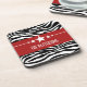 Trendy and modern Sassy Star Zebra Coaster Set featuring a chic black and white zebra print background and a bold red border adorned with a fun star motif. This girly design may be customised with the personalised text of your choosing. Click "Customise It" to find more personalisation options.