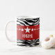 Trendy and modern Sassy Star Zebra Mug featuring a chic black and white zebra print background and a bold red border adorned with a fun star motif. This girly design may be customised with the personalised text of your choosing. Click "Customise It" to find more personalisation options.