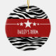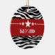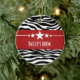 Trendy and modern Sassy Star Zebra Ornament featuring a chic black and white zebra print background and a bold red border adorned with a fun star motif. This girly design may be customised with the personalised text of your choosing. Click "Customise It" to find more personalisation options.