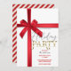 Red Satin Ribbon Bow Christmas Holiday Party Invitation