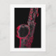 A dramatic image of a saxophone in black-and-white with red highlights, on a black background. Great for sax lovers!