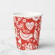 NewParkLane - Christmas Paper Cups, with a traditional, intricate Scandinavian Christmas Pattern of flowers, hearts, birds, and Christmas ornaments in red and white.