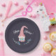 Red Scandinavian Gnome with a present Holiday Paper Plate
