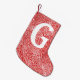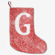 Personalised stocking on stylish wild red and white pattern.