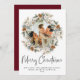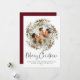Red Script Elegant Botanical Wreath Christmas Holiday Card