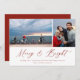 Festive Modern Minimalist, red calligraphy script "Merry & Bright" with solid red backing, 2 photo Christmas card.