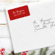 This design features a Christmas red, return address label, with a simple minimalist, classic style, a simple mailing label, with a cute whimsical, minimal stripes pattern, a traditional, calligraphy script, with brush lettering