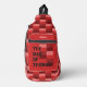 Colour combination of lighter and darker red. On a red background and with space for your text on the front of the pouch.