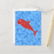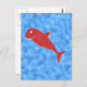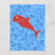 A red colour shark cartoon on a blue patterned background. The shark and blue pattern are a printed design, it is not a raised or textured design.