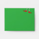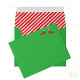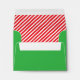 This green envelope has a simple, funny design with elf legs wearing green & white striped tights and red elf shoes, with tiny jingle bells on the front and a bright, fun, festive, red and white candy cane striped pattern on the inside.