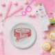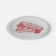 Red shoe polish paper plate