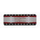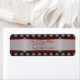 A gorgeous silver metal look with an ornamental row design lining the top and bottom with a classy velvet look red ribbon, topped with diamond jewel like embellishments.