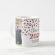 Customisable photo template class of 2024 graduation mug with silver and red confetti pattern.