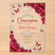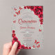 Red silver Quinceanera celebration invitation. Features script font, silver butterflies, watercolor roses and tiara. Perfect for an elegant princess style glam celebration. Personalize with your own details. Stylish transparent or frosted acrylic invitations.