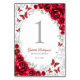 Red Silver Floral Quinceanera Table Number