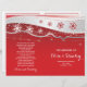 Lovely rows of red and white snowflakes and stars silver grey folded wedding ceremony and party program displaying a waved band with snowflakes in red and white and silver grey stars on red background. This is an ideal choice for a December winter or Christmas wedding. Fold it in half to have a folded wedding program. The value paper type folds well, so choose only that.