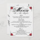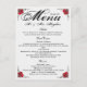 Red Silver Rose Wedding Dinner Menu Thank you Note Postcard
