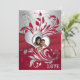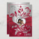 Red, Silver Scrolls, Hearts Photo Wedding Invite