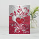 Red, Silver Scrolls, Hearts Wedding Invitation