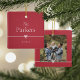 Sweet and simple Christmas ornament features a minimalist layout, with your family name and the year in clean, classic serif typeface on a festive red background. A petite bow through the centre completes the design. Add a photo to the reverse side, accented with a matching bow illustration.