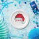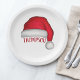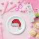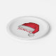 This design features a red Christmas traditional paper plate, Santa Claus hat watercolor, holiday entertaining, Christmas party supplies, a cute holiday typography, custom customised personalised name, a classy simple minimalist minimal, custom holiday party decor, a Christmas Santa Claus hat, perfect for dinner dessert hor d'oeuvre appetizers