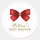 Red Simple Watercolor Bow Baby Shower Classic Round Sticker