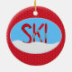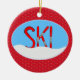 Red Skis And Snow In An Oval Ceramic Tree Decoration