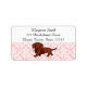 Cute Red Smooth Haired Dachshund cartoon Address Labels for dog lovers who love Doxie!! Whimsy and funny Dog Art created by Naomi Ochiai from Japan. An adorable Red Smooth Haired Doxie puppy is walking with a red rose. You can customise text and more! Damask pattern.