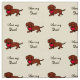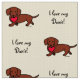 Cute Red smooth haired Dachshund puppy is walking proudly. He/she is having a Red Heart in his/her mouth. A little bit of Irish. Cheery and Whimsy and funny Dog Art created by Naomi Ochiai from Japan. Cute Dachshund cartoon design for dog lovers who love Doxie!! Leghorn colour. Valentine's Day gifts.