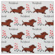 Red Smooth Dachshund Running Paws and Hearts Fabric