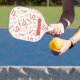 This cute pickleball paddles feature your name/text on a white background with red snake and mushroom patterns. Personalise it for your needs. You can find matching products at my store.