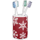 These toothbrush holder and liquid soap container are beautiful for a Christmas bath decoration. They are well made, durable and elegant. The liquid soap container lid adjusts perfectly, is sturdy and has a nice silver tone. Excellent quality. The white snowflakes on red look gorgeous. They are bright and the printing is perfect. Love my Christmas bath set.