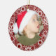 Red background with white snowflakes customisable keepsake photo holiday ornament.
