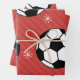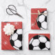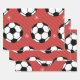 Red Soccer Christmas Striped Festive Ball & Snow Wrapping Paper Sheet