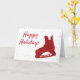 Front design: gold background with hockey skate in red sparkle and 'Happy Holidays' in red