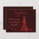 An elegant red design, this invitation card features a burgundy background, red sparkles and a red sequin gown. Included is a template to add your name, with "Will you be my maid of honour?" in lovely text. Order yours today!