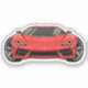 A bold red sports car with sharp angles, aggressive headlights, and a powerful front stance. Perfect for supercar fans, speed lovers, and modern automotive sticker designs.