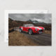 A photograph of a red convertible sports car photo taken on a country road with a backdrop of snowy mountains by the photographer Dave Fletcher