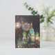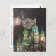 red square firework night postcard