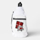 Red Squares with Beams and Grey Ovals Text Sling Bag