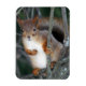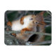 Closeup photograph of a cute little red coloured squirrel sitting among tree branches
