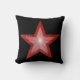 Modern design with a "shining" red and white star on a black background your choice of text on the back. Throw pillow with a customisable design for you to personalise with your own text, images and ideas. This is a digital art image created using original photographs and digital techniques and printed onto fabric, it does not shine or contain real sparkles.