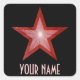 Red Star 'Your Name'' square sticker black