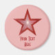 Modern design with a "shining" red and white star on a pale pink background. Fridge magnet with a customisable design for you to personalise with your own text, images and ideas. Please note that this is a printed image created using original photographs and digital techniques, it does not shine or contain real sparkles.