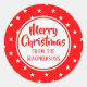 Sticker holiday gift tags with a red stars background. The "Merry Christmas" greeting and who it is from can be changed.