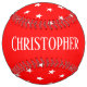 One half has a pattern of white stars on a red background. The other half is plain red with a custom name in white.